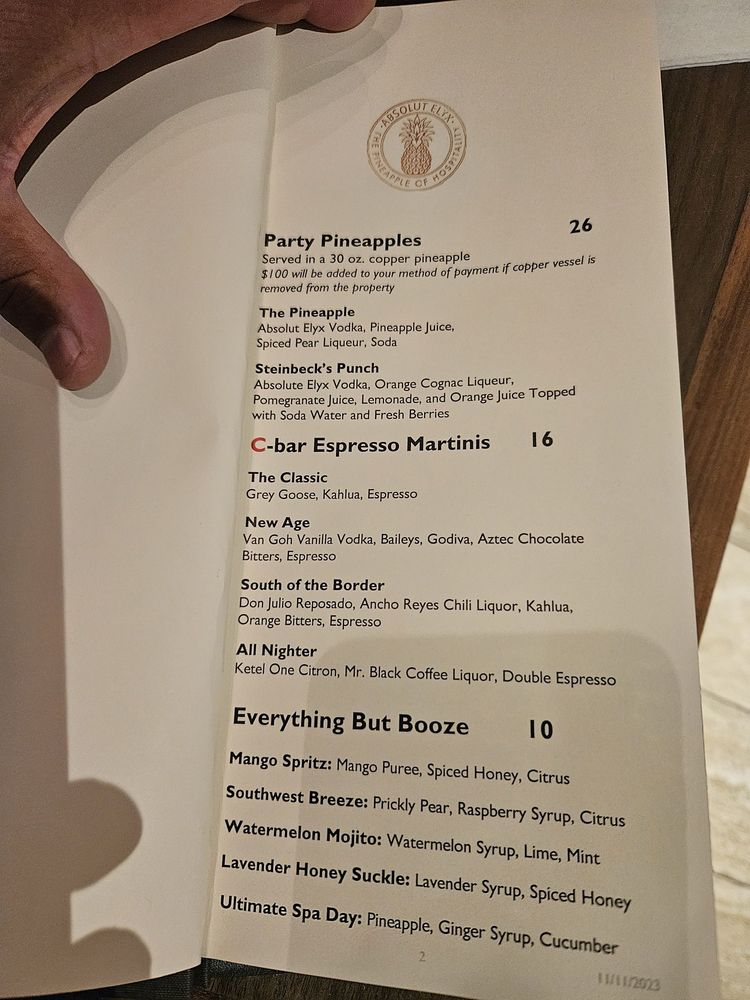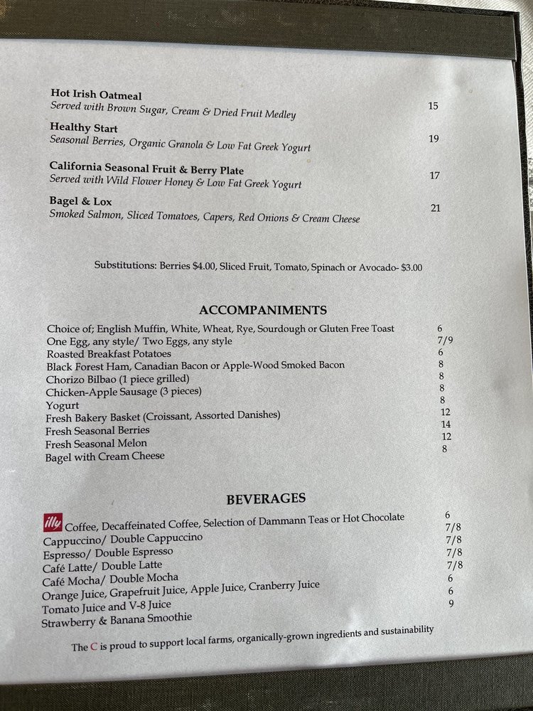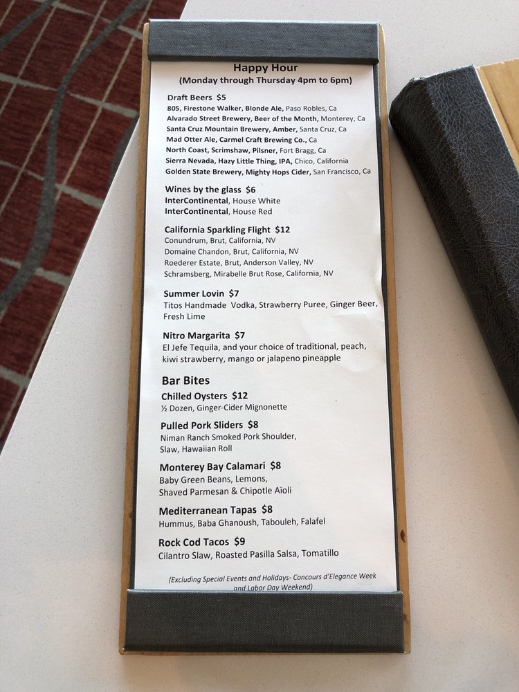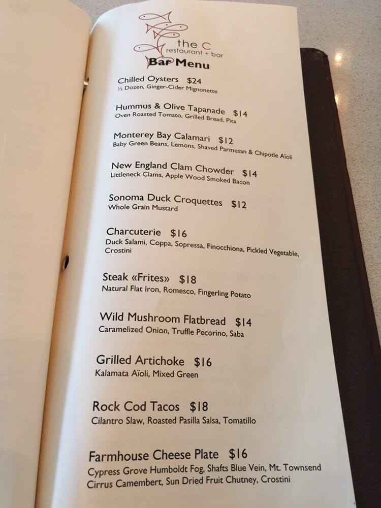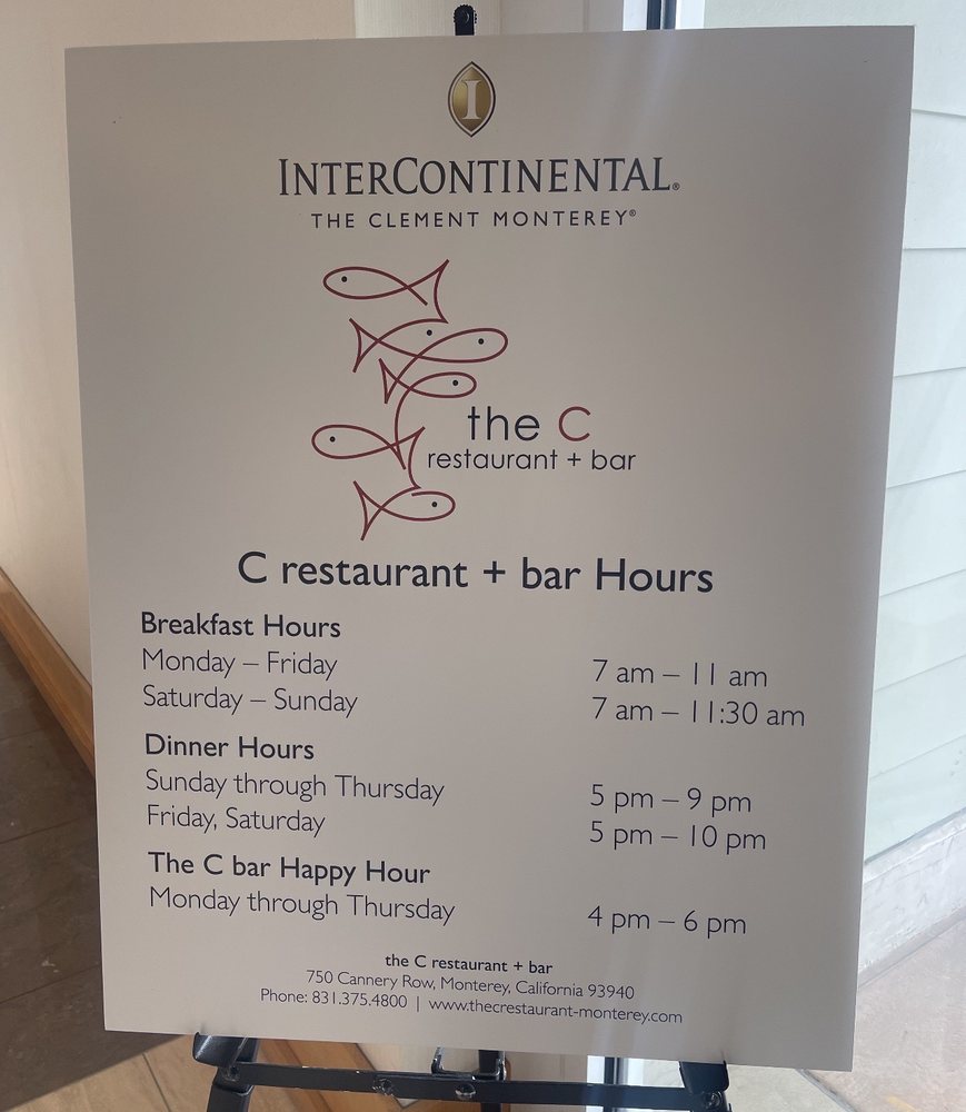 Introducing the menu at the C restaurant bar located in Monterey, CA. This upscale dining spot offers a variety of vegan options, limited vegetarian choices, and a menu suitable for breakfast, lunch, and dinner. With a full bar, happy hour specials, and a classy ambiance, it's the perfect place for a special night out. Customers rave about the impeccable customer service and delicious dishes like the Prawn and Dungeness crab Pappardelle and Ceviche. The scenic ocean view adds to the overall experience, making it a must-visit for both locals and tourists. Don't miss out on their cinnamon raisin French toast or Chef special beet and burrata salad. Whether you're looking for a romantic dinner or a family-friendly breakfast spot, the C restaurant bar has something for everyone.